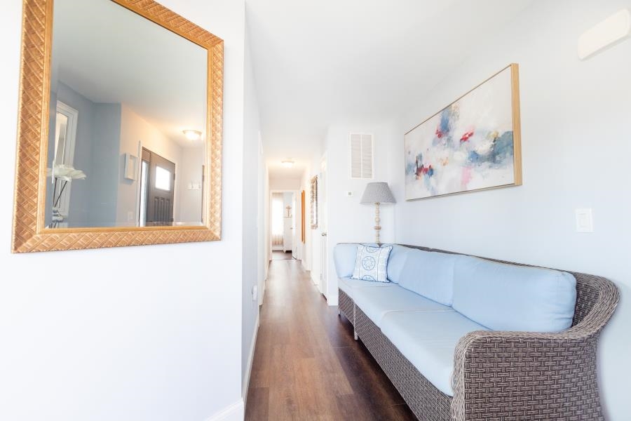 Discover relaxed shore living in a newer upside-down beach home nestled in one of North Wildwood s most sought-after neighborhoods. The top level showcases a bright, open-concept design featuring a living room with a versatile gas fireplace, a private home office, and a beautifully maintained kitchen with an oversized island and double oven. The sun-filled dining area and convenient powder room complete the space. Step out onto the expansive 10 x 24 upper deck to take in partial bay views and sweeping vistas of the town perfect for entertaining with its sectional seating and outdoor dining set. The middle floor offers three inviting bedrooms and two full baths, including a spacious primary en suite, along with a laundry room equipped with a utility sink. Outside, a covered porch provides a cozy seating area and a soothing hot tub for ultimate relaxation. On the ground level, you ll find a bonus room guest suite with a full bath and direct access to the backyard. The 9-foot ceiling garage is fully insulated with built-in storage options. The impressive 28 x 40 fenced backyard is already equipped with an outdoor shower and a gas line, ideal for adding a future pool. A commercial-grade flagpole enhances the front yard. Additional documents include an inclusion list, survey, elevation certificate, floor plan, pool proposal and seller s disclosure. Annual flood insurance is $1,745.75, and annual hazard insurance is $1,578.30. Professional photos forthcoming.